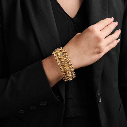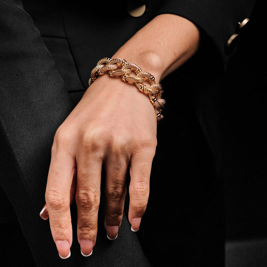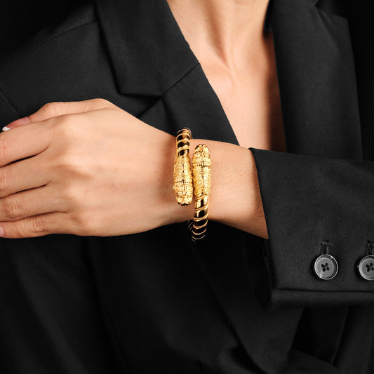 Bracelets and bangles have a long history in jewellery, dating back thousands of years. They were worn by ancient civilizations such as the Egyptians, Greeks, and Romans, often as adornments that symbolized status or religious beliefs. In different cultures, they took on various forms and materials, including precious metals, gemstones, and intricate designs. Throughout history, bracelets and bangles have remained popular accessories, evolving with changing fashion trends. Today, they are worn for both decorative and symbolic purposes, offering a wide array of styles and designs to suit individual preferences and cultural traditions.