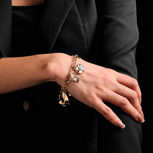 Charm bracelets have a rich history spanning thousands of years. They date back to ancient civilizations, where charms were worn as protective amulets. During the Victorian era, charm bracelets became popular as sentimental pieces adorned with lockets and miniature portraits. In the mid-20th century, charm bracelets experienced a resurgence, with charms representing travel, hobbies, and milestones. Today, charm bracelets continue to be cherished as personalized accessories, allowing wearers to express their individuality and capture memories through a collection of meaningful charms. From ancient times to the present day, charm bracelets have remained a beloved and versatile jewellery choice.