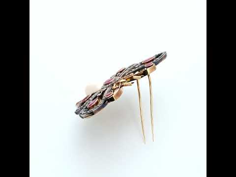 18 Kt yellow gold and silver butterfly brooch set with rubies and diamonds