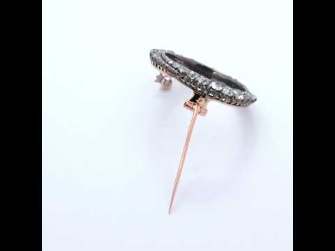 18 Kt gold and silver double crescent brooch set with graduated old-cut diamonds.