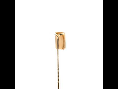 18 Kt yellow gold rectangle and 9 Kt yellow gold stick pin embellished with pearl.
