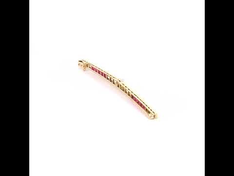 18 Kt yellow gold and platinum bar brooch set with old cut diamonds and square step cut rubies