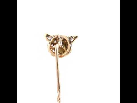 10 Kt gold and silver pin set with diamonds and a ruby eye