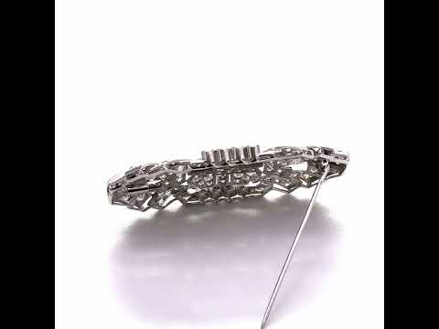 Platinum and 18Kt white gold brooch set with old-cut and baguette-cut diamonds. French work