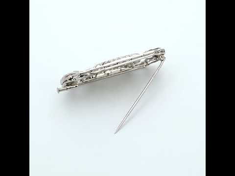 Platinum (850) brooch of openwork geometric design entirely set with eight-eighths-cut and brilliant-cut round diamonds