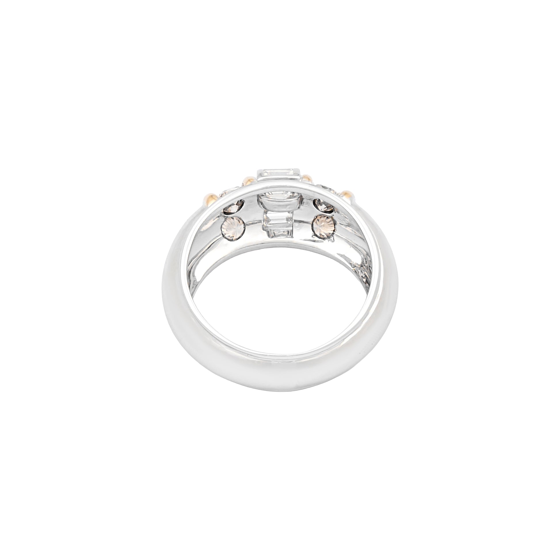 18 Kt white and yellow gold ring set with white and brown diamonds