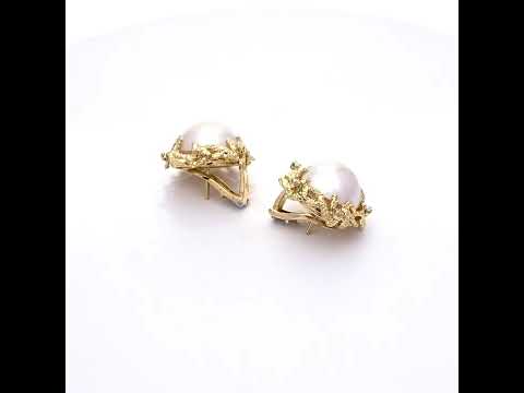 18 Kt ring and earclip suite set with diamonds and MABÉ pearl