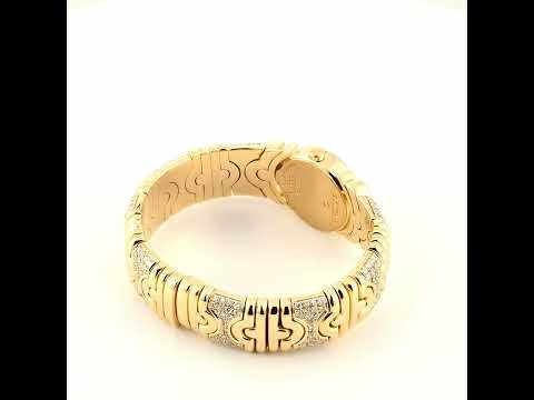 18 Kt yellow gold bangle watch set with diamonds. Bulgari "parentesi" collection. Movement: quartz.