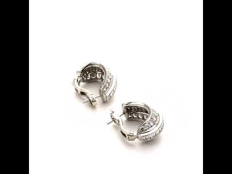 Platinum 950 pair of earrings set with round brilliant and baguette diamonds.