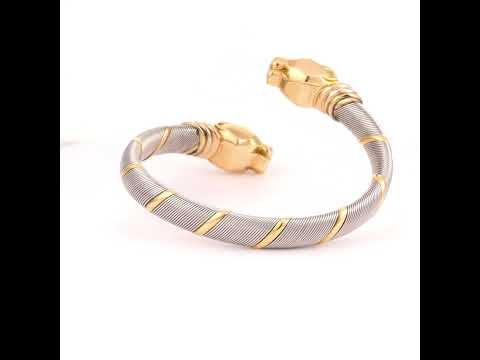 18 Kt yellow, rose and white gold and stainless steel bangle with two solid gold "Panther" heads