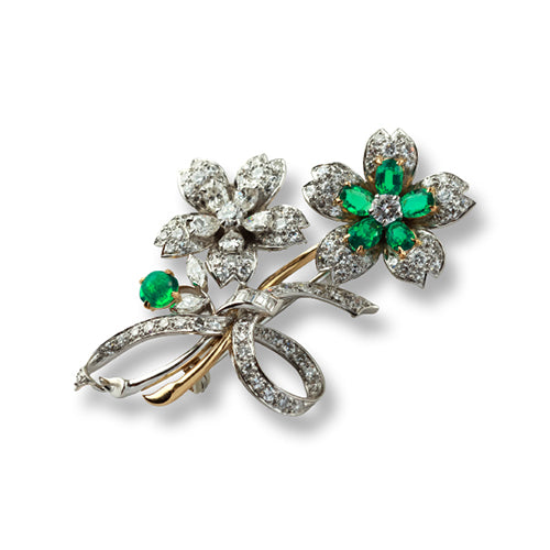 Cartier Emerald & Diamond Flower Spray Brooch