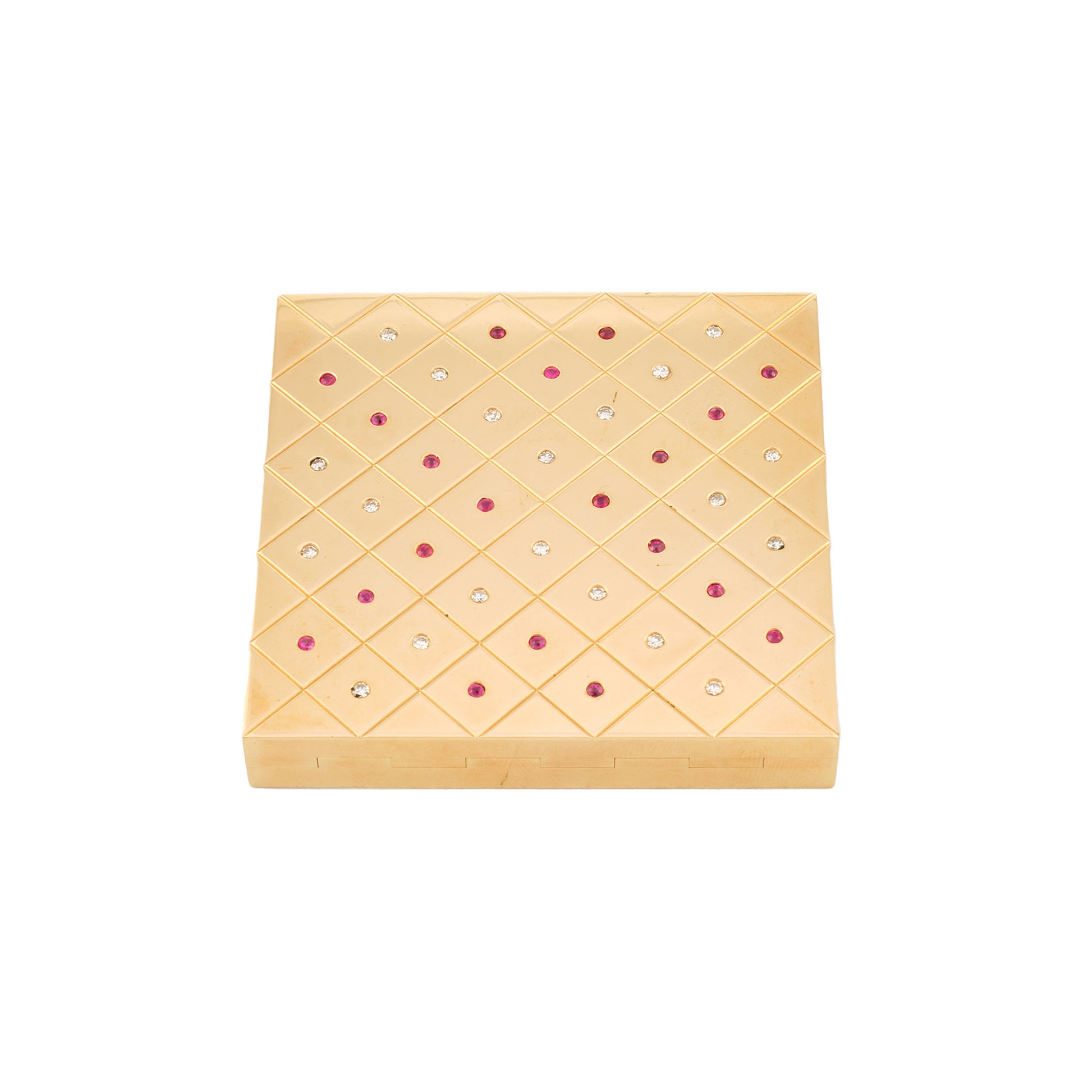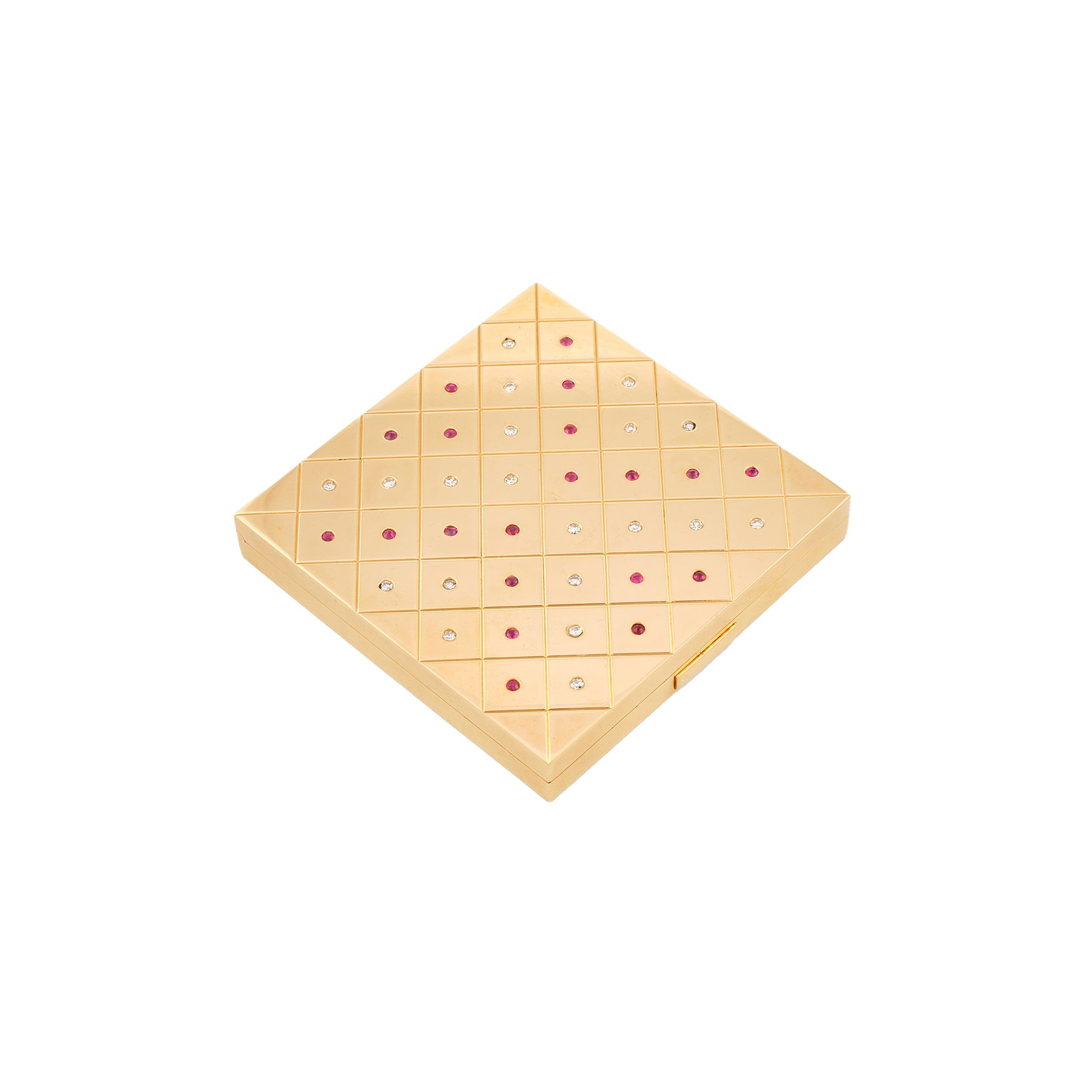 14 kt Gold Compact with mirror set with diamonds and Rubies
