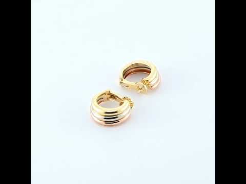 18 Kt yellow, white and rose gold hoop earrings.