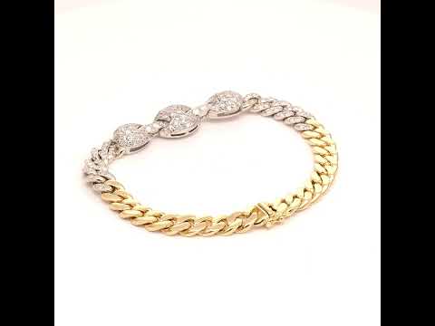 18 Kt yellow and white gold bracelet set with diamonds. Maker's mark KLd, London import mark.