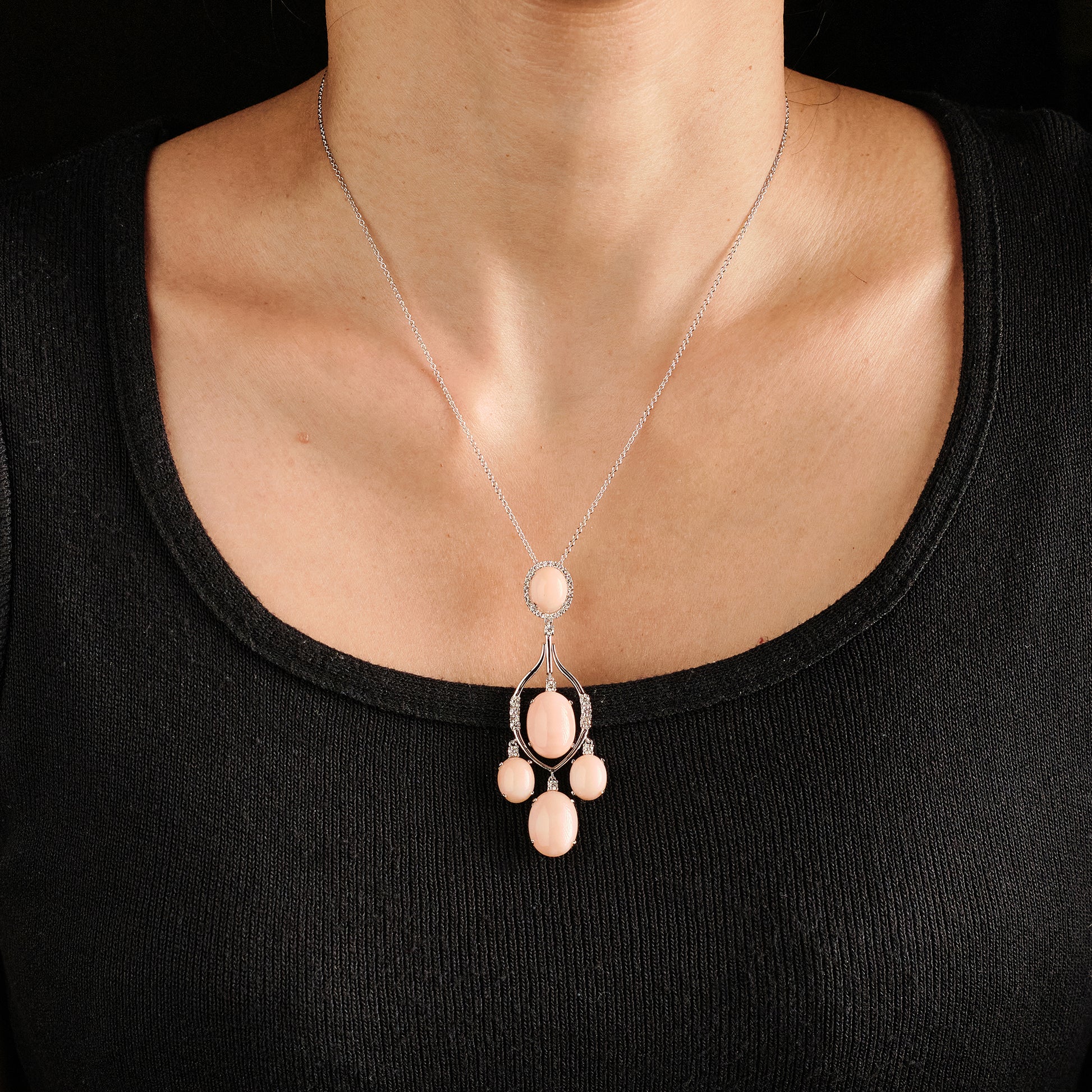18 Kt white gold pendant set with diamonds and angel skin coral