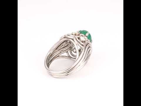 Platinum (850) bombée ring set with diamonds and a cabochon emerald