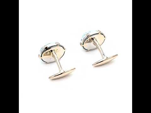 18 Kt white gold cufflinks set with diamonds and backed rock crystal quartz