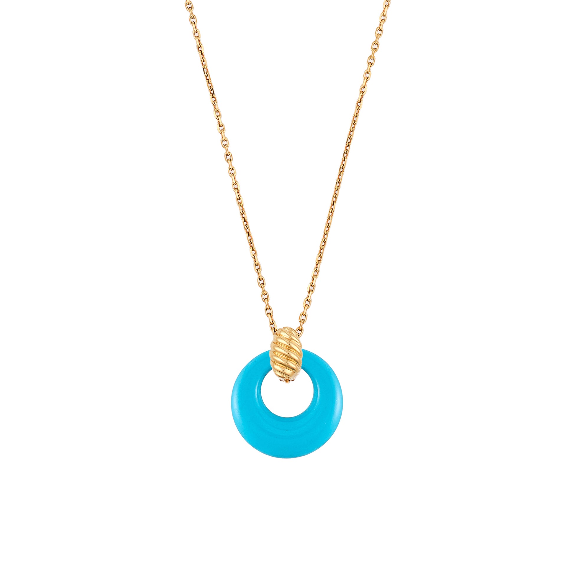 18kt yellow gold pendant with 12 interchangeable hoops in gold and coloured stones.