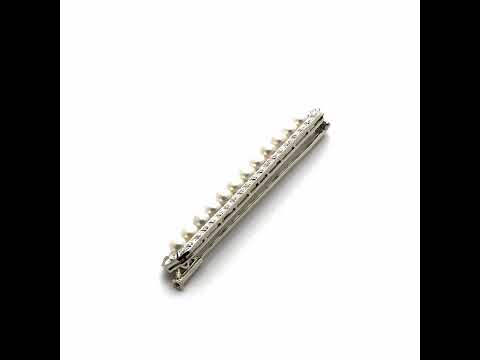 18 Kt white gold and platinum bar brooch set with diamonds and pearls