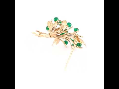 18 Kt yellow gold and platinum bouquet brooch set with 0.23 carats diamonds and Chrysoprase Beads.