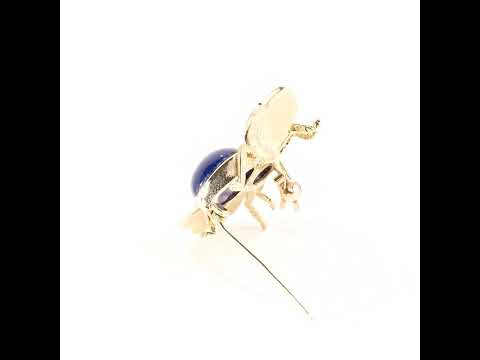 14 Kt yellow gold bumblebee brooch set with lapis lazuli