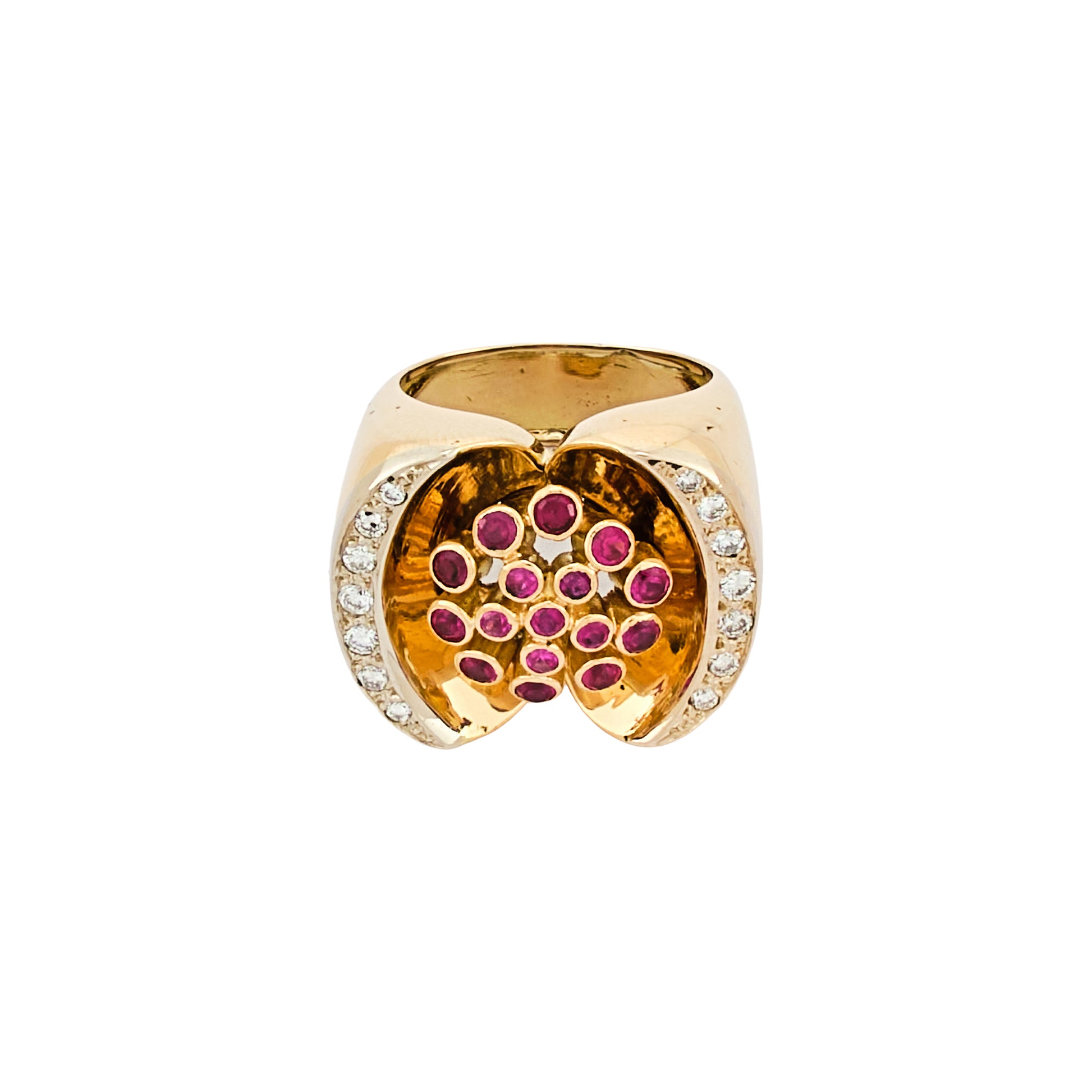 18 kt yellow gold ring set with diamonds and rubies.