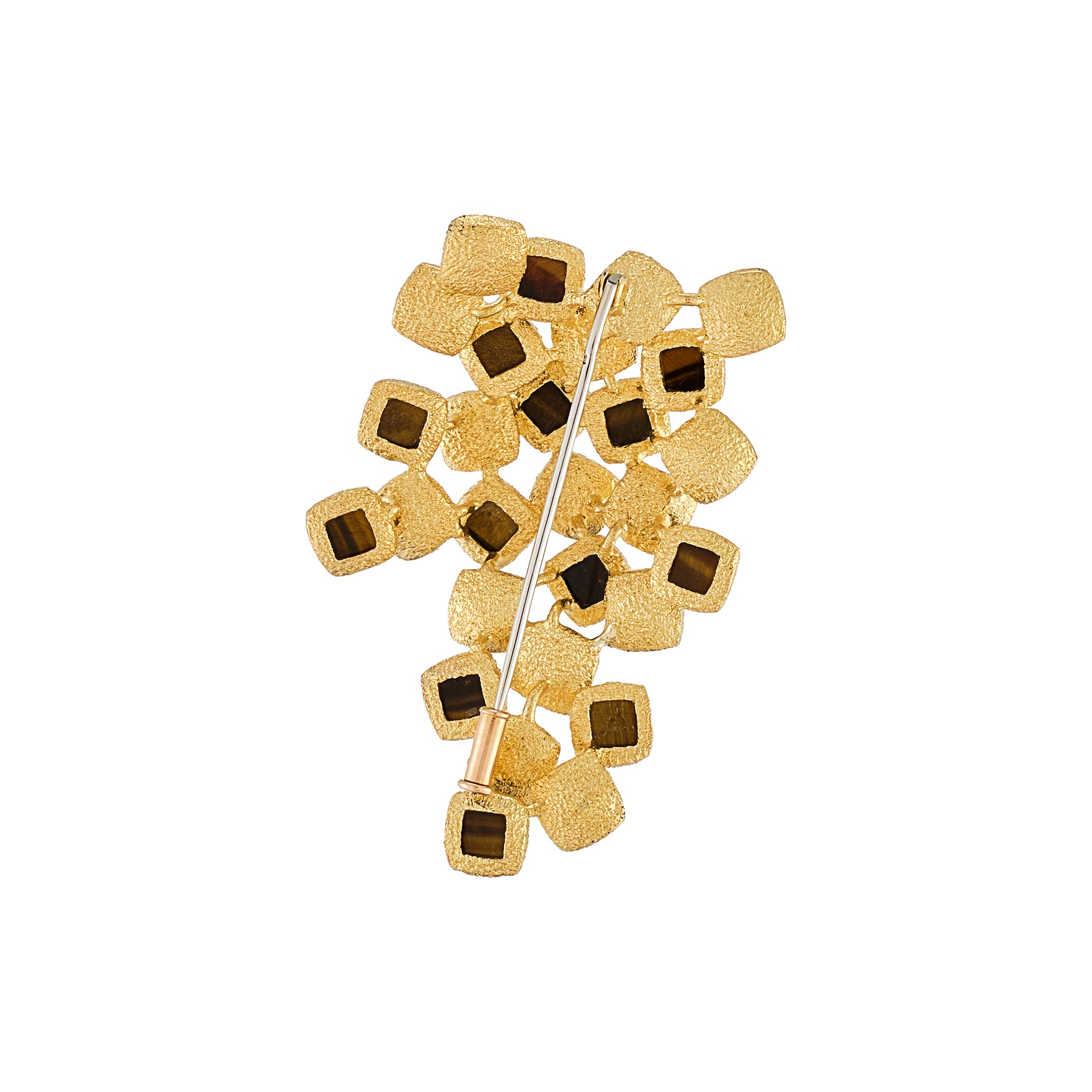 18 Kt yellow gold brooch set with tiger's eye quartz plaques.
