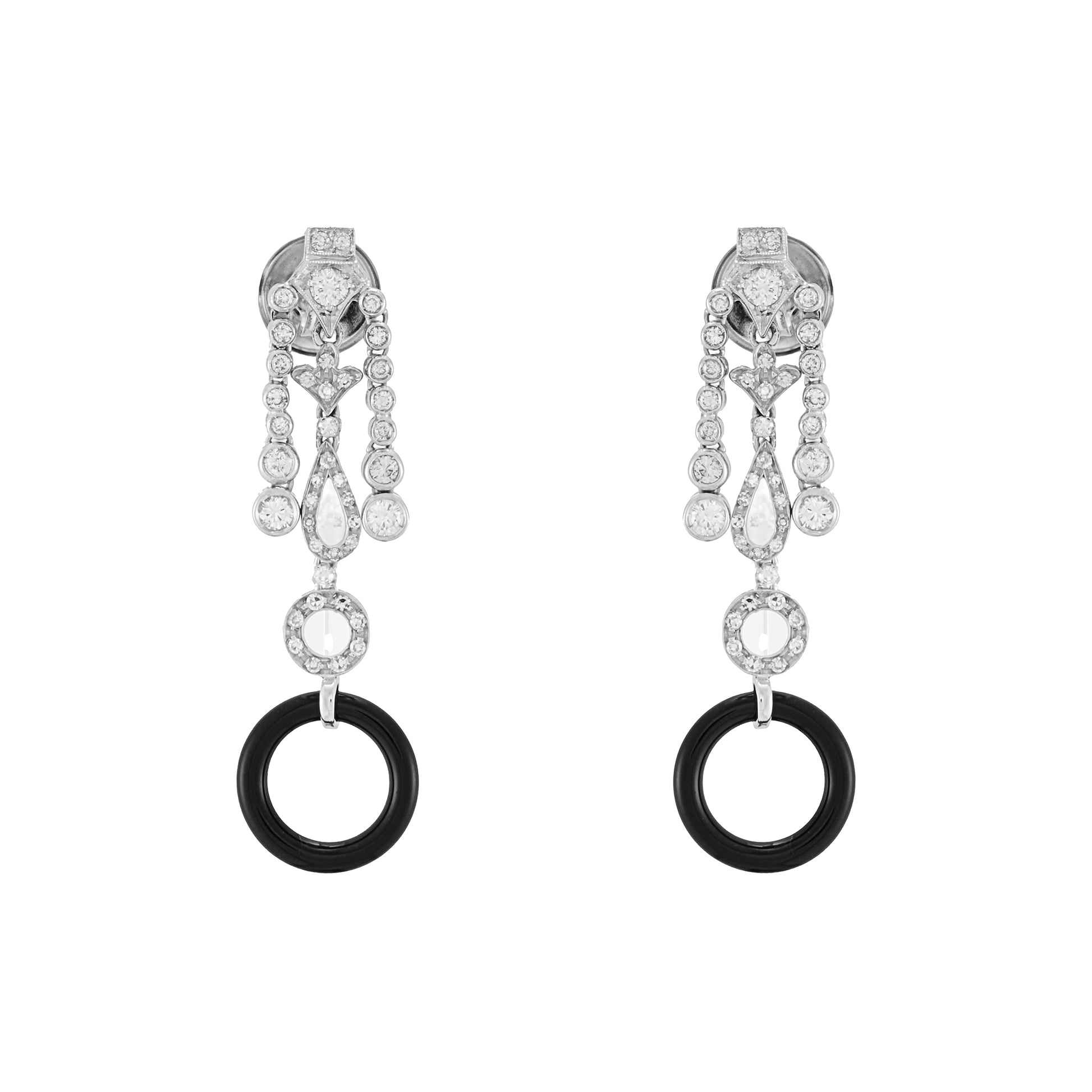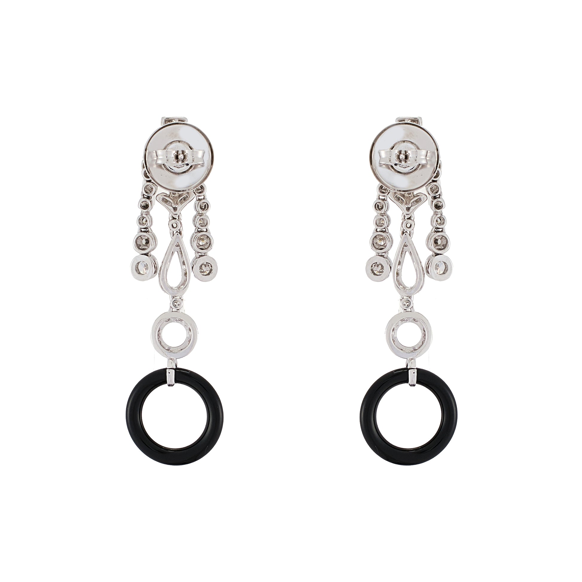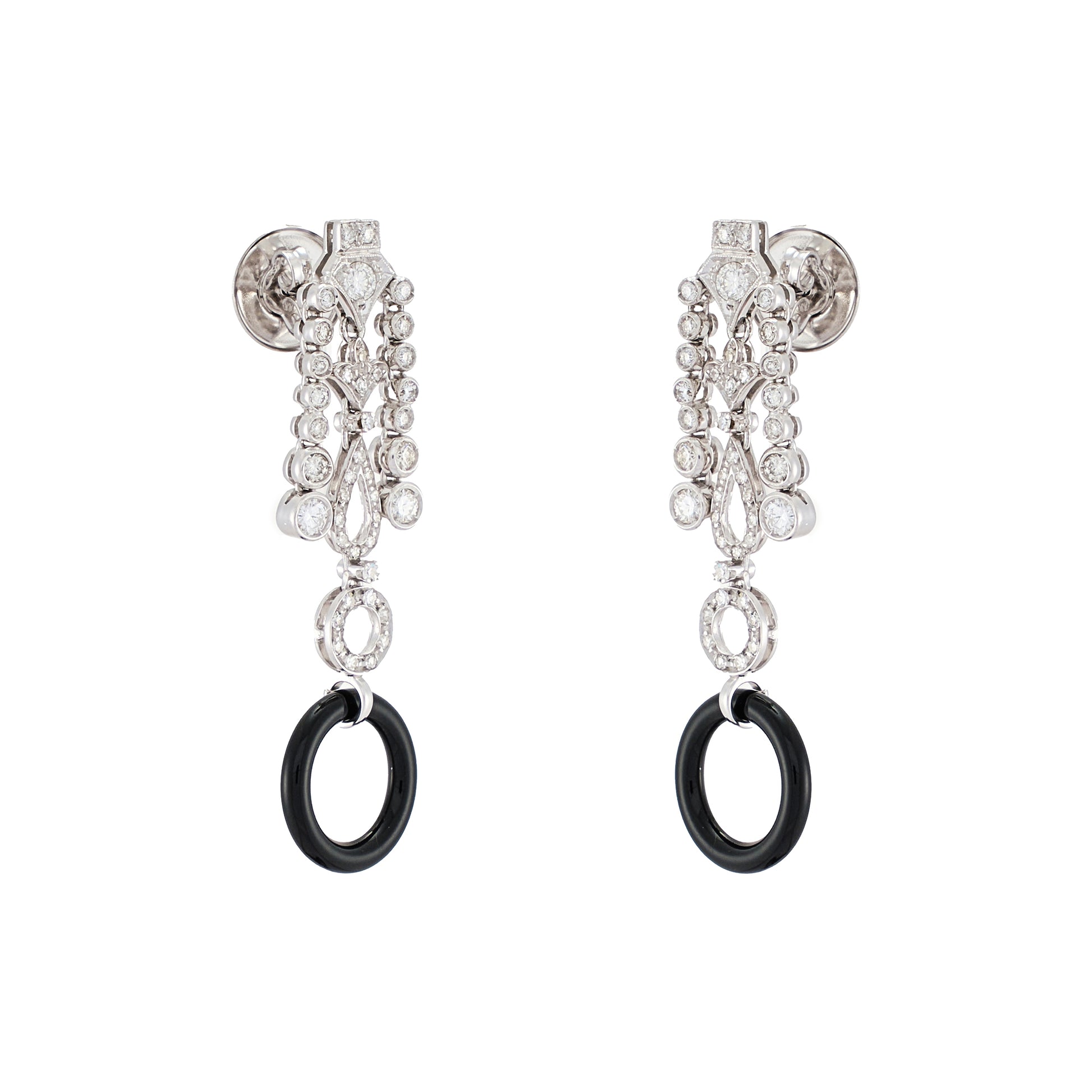 18 Kt white gold earrings set with diamonds and black onyx rings