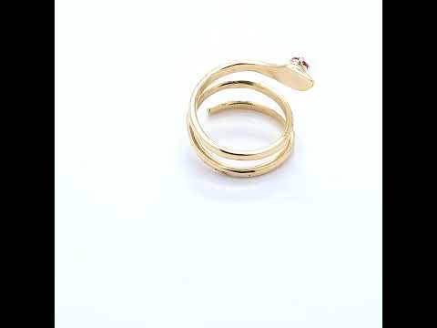 14 Kt yellow gold snake ring set with a pink sapphire